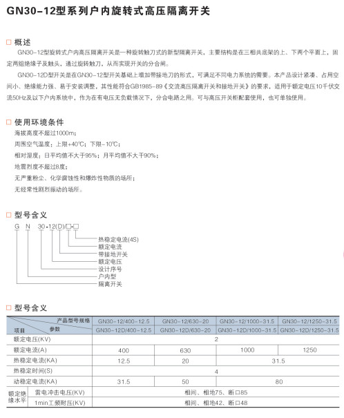 GN30-12型系列戶內(nèi)旋轉(zhuǎn)式高壓隔離開關(guān)