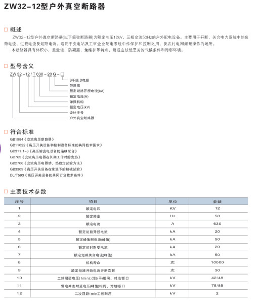 ZW32-12型戶外真空斷路器